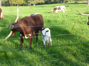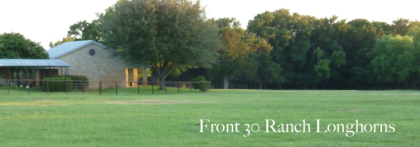 Front 30 Ranch longhorns must possess three, non-debatable traits: (1) a genetic heritage that represents the very best the breed has to offer, (2) a gentle disposition that insures an ease of workability, and (3) virility to propagate the desirable traits of our herd sires and our foundation cows to produce an outstanding calf crop.